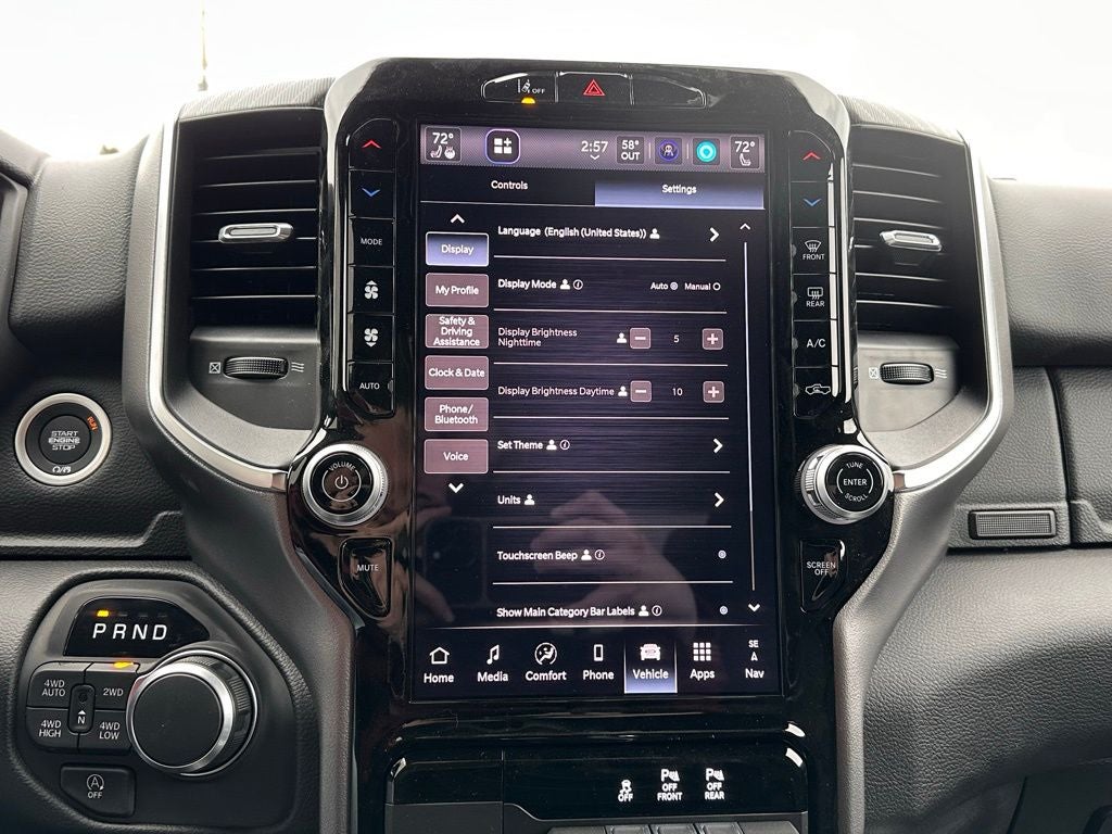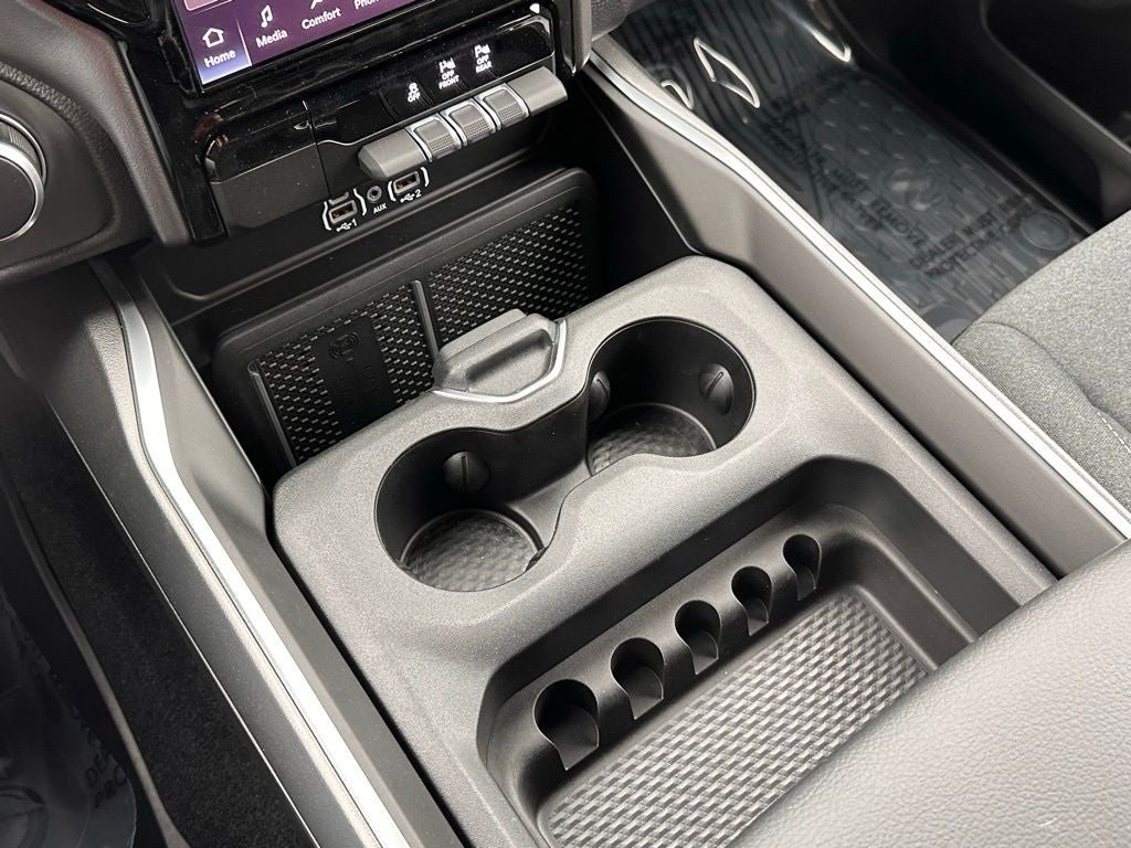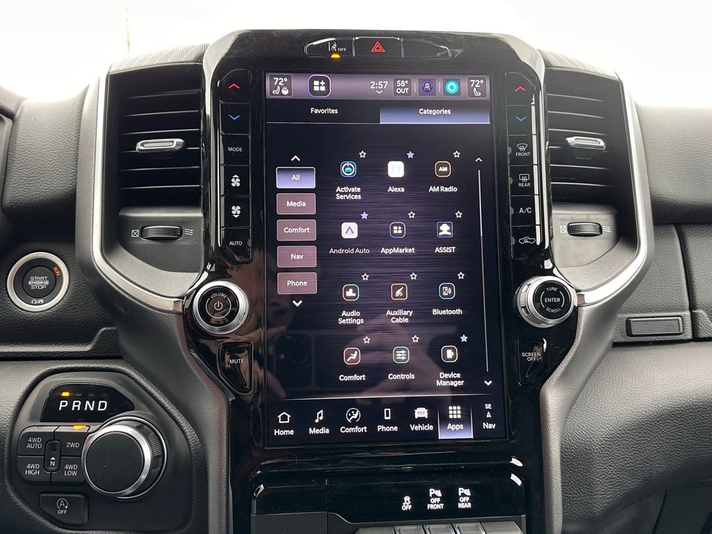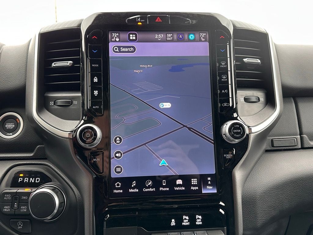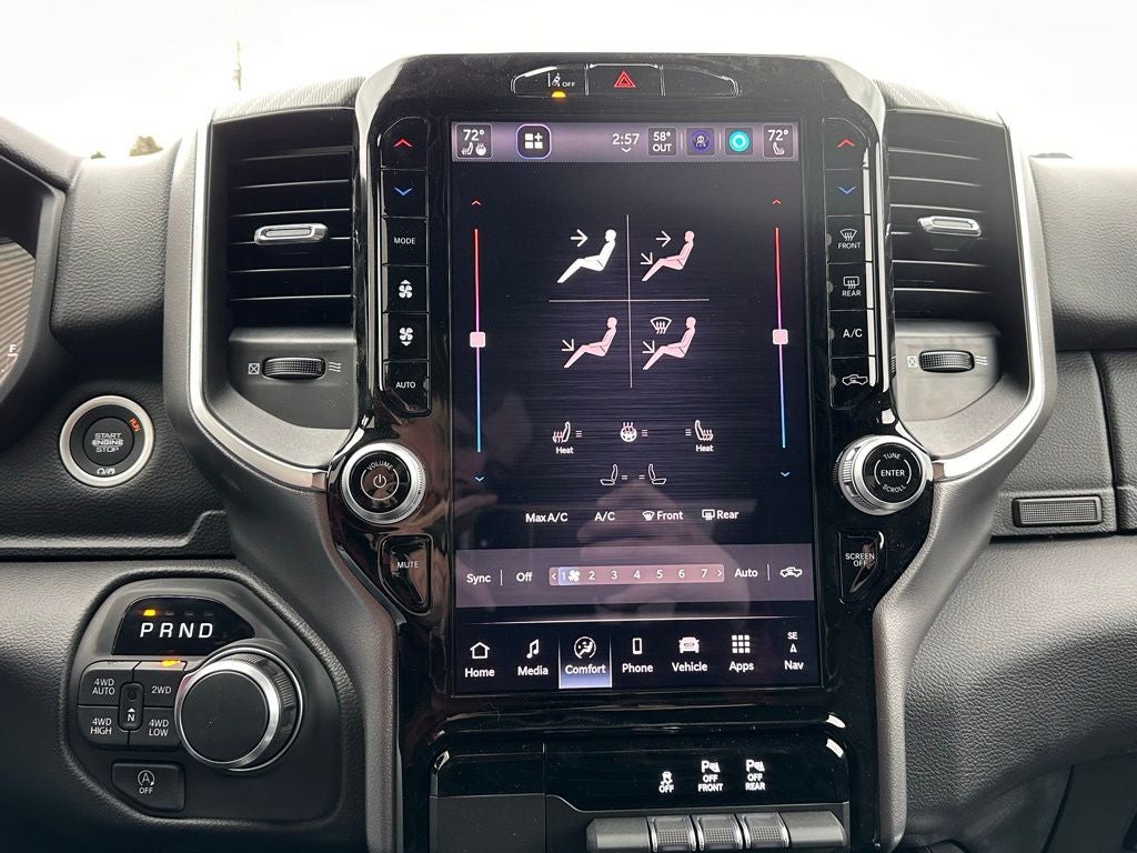 Discover the ultimate in comfort and convenience with the Ram 1500's wealth of premium amenities. The dual-zone automatic climate control, power-adjustable pedals, and leather-wrapped steering wheel ensure a tailored driving experience. The Uconnect 5 navigation system with a 12 display keeps you connected and on course, while the 400W power inverter and wireless charging pad provide ample power for all your devices.