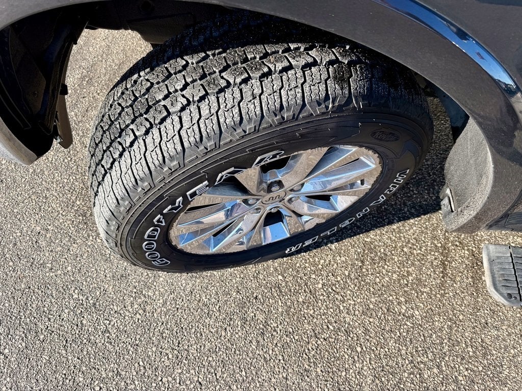 The opulent King Ranch trim elevates the F-150 with exclusive 20-inch polished aluminum wheels, a distinctive satin aluminum grille, and premium LED lighting. Inside, you'll find supple King Ranch logo-embossed leather-trimmed seating surfaces with heated, ventilated, and massaging front seats, genuine Santos grain wood trim, and a heated leather-wrapped steering wheel. The spacious SuperCrew cabin offers best-in-class interior volume, along with dual-zone automatic climate control and a Sony Audio System with HD Radio for a first-class experience.