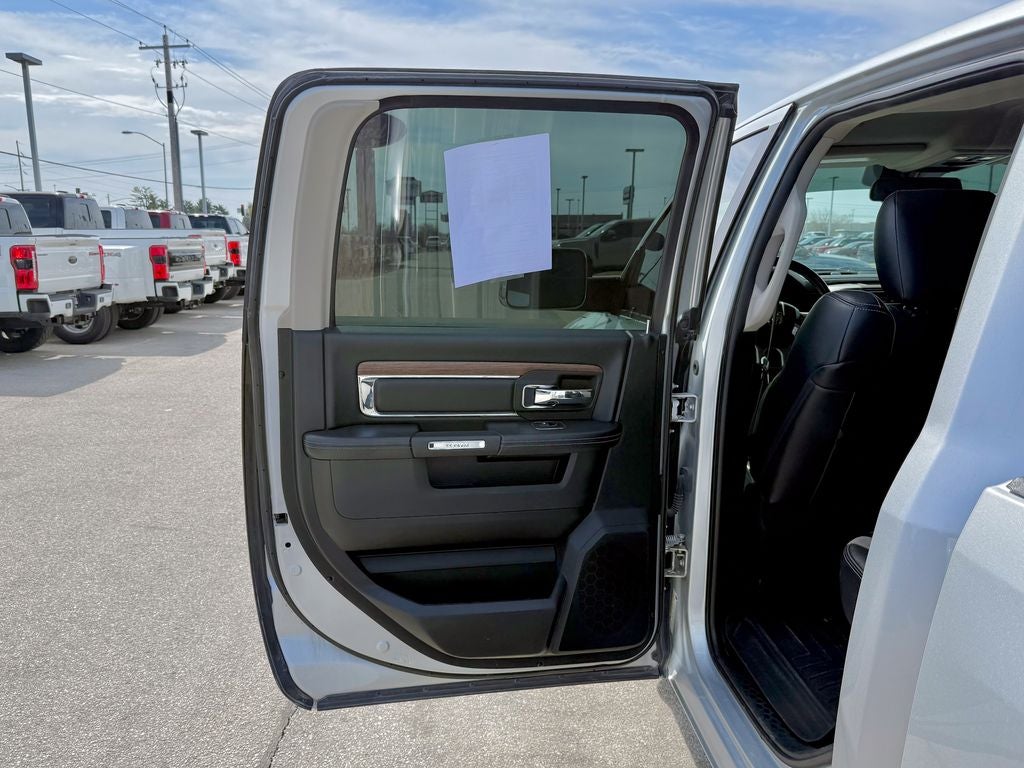 The upscale Laramie trim outfits the Ram 1500 with distinctive 20-inch polished aluminum wheels, all-season tires, and a chrome-accented grille with signature LED lighting. Inside, you'll find premium leather-trimmed seats with heated and ventilated front rows, a heated leather-wrapped steering wheel, and elegant interior trim with authentic wood inlays. The spacious Crew Cab offers best-in-class rear legroom and premium comfort, along with dual-zone automatic climate control and a premium 9-speaker Alpine audio system with an 8.4-inch touchscreen Uconnect 4C NAV.