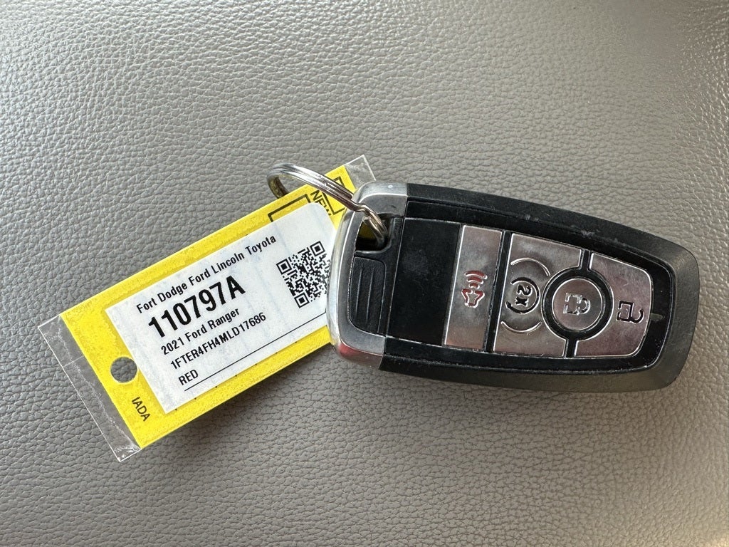 CARFAX One-Owner. Rapid Red Metallic Tinted Clearcoat 2021 Ford Ranger Lariat 4WD 10-Speed Automatic EcoBoost 2.3L I4 GTDi DOHC Turbocharged VCT Equipment Group 501A, FX4 Off-Road Package, Trailer Tow Package, Technology Package, Remote Start.