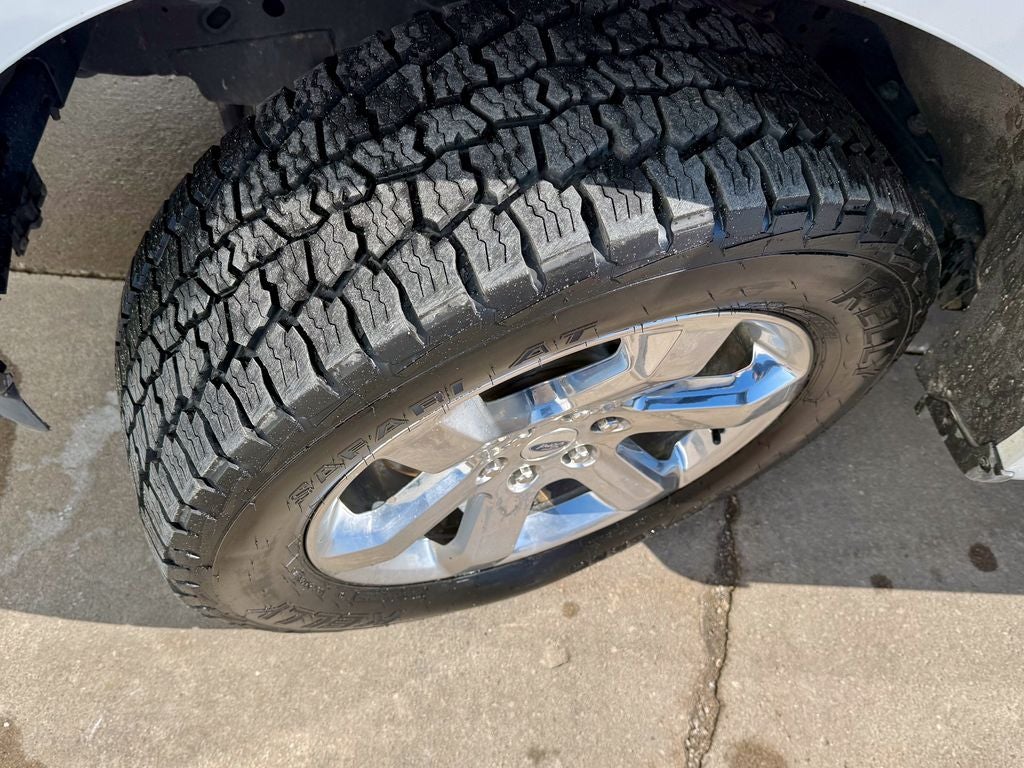 The upscale Lariat trim outfits the F-150 with distinctive 20-inch aluminum wheels, all-season tires, and a chrome-accented grille with signature LED lighting. Inside, you'll find premium leather-trimmed seating with heated and ventilated front seats, a leather-wrapped steering wheel with mounted controls, and elegant interior accents with authentic brushed aluminum trim. The versatile SuperCrew cab offers best-in-class interior space and the innovative fold-flat work surface, along with dual-zone automatic climate control and an 8-speaker premium B&O Sound System by Bang & Olufsen with HD Radio.