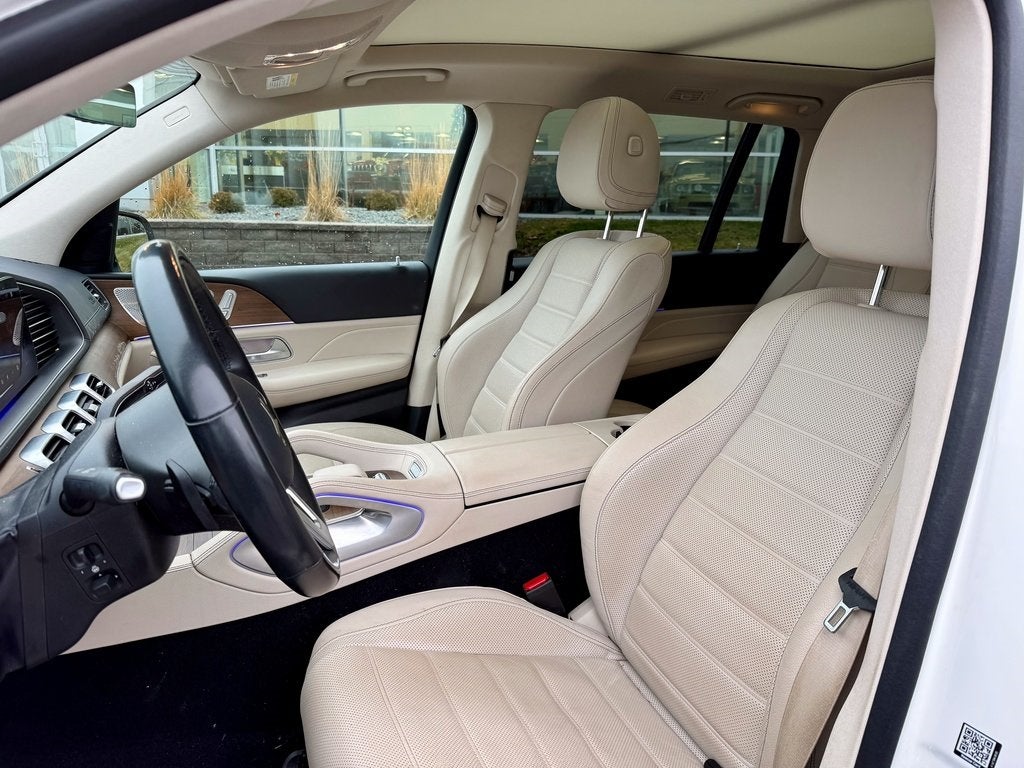 The well-equipped base trim elevates the GLS with 21-inch 5-spoke alloy wheels, a distinctive chrome diamond-block grille, and MULTIBEAM LED headlights. Inside, you'll find premium MB-Tex upholstery with heated and ventilated front seats, a leather-wrapped steering wheel, and genuine aluminum trim. The spacious three-row cabin offers 17.4 cubic feet of cargo space behind the third row-expandable to 84.7 cubic feet with the rear seats folded, along with automatic climate control and a 12.3-inch multimedia touchscreen with the MBUX infotainment system for an exceptional experience.
