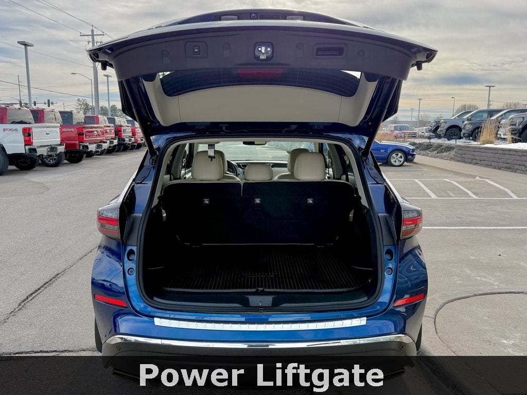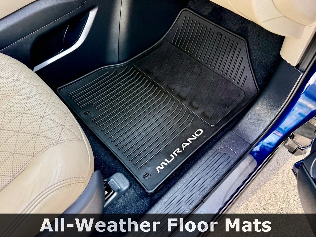 The top-tier Platinum trim elevates the Murano with 20-inch aluminum-alloy wheels, a distinctive V-Motion grille with chrome accents, and signature LED lighting. Inside, you'll find premium semi-aniline leather-appointed seating surfaces with heated and ventilated front seats, genuine wood-tone trim, and a heated leather-wrapped steering wheel. The spacious five-passenger cabin offers 32.1 cubic feet of cargo space behind the second row-expandable to 67.0 cubic feet with the rear seats folded, along with dual-zone automatic climate control and a 11-speaker premium audio system with Active Noise Cancellation for an exceptional acoustic experience.