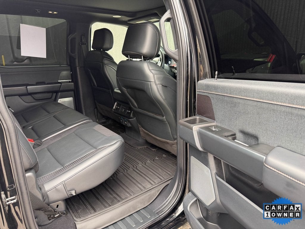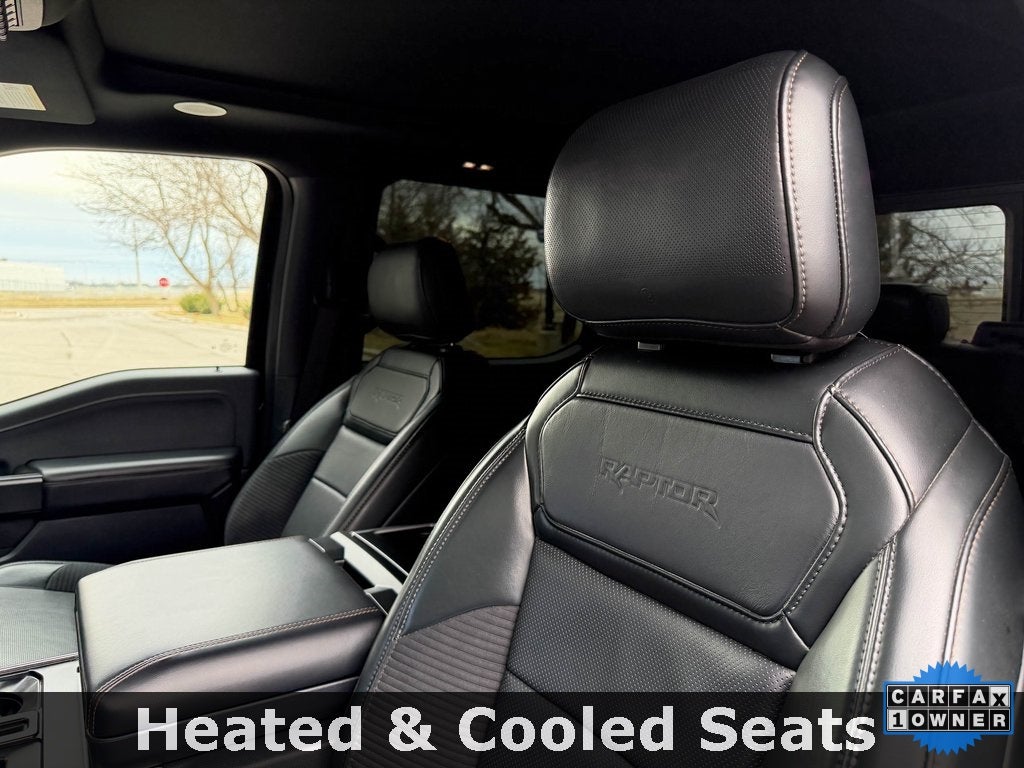 The purpose-built Raptor trim transforms the F-150 with 17-inch beadlock-capable aluminum wheels, FOX Live Valve Internal Bypass shocks with 13.0 inches of front travel, and an aggressive off-road bumper with bold FORD lettering. Inside, you'll find premium leather-trimmed and suede seating surfaces with heated and ventilated front seats, a leather-wrapped steering wheel, and unique Raptor instrumentation. The spacious SuperCrew cabin offers best-in-class interior volume, along with dual-zone automatic climate control and a 10-speaker B&O Sound System by Bang & Olufsen for an exhilarating experience.