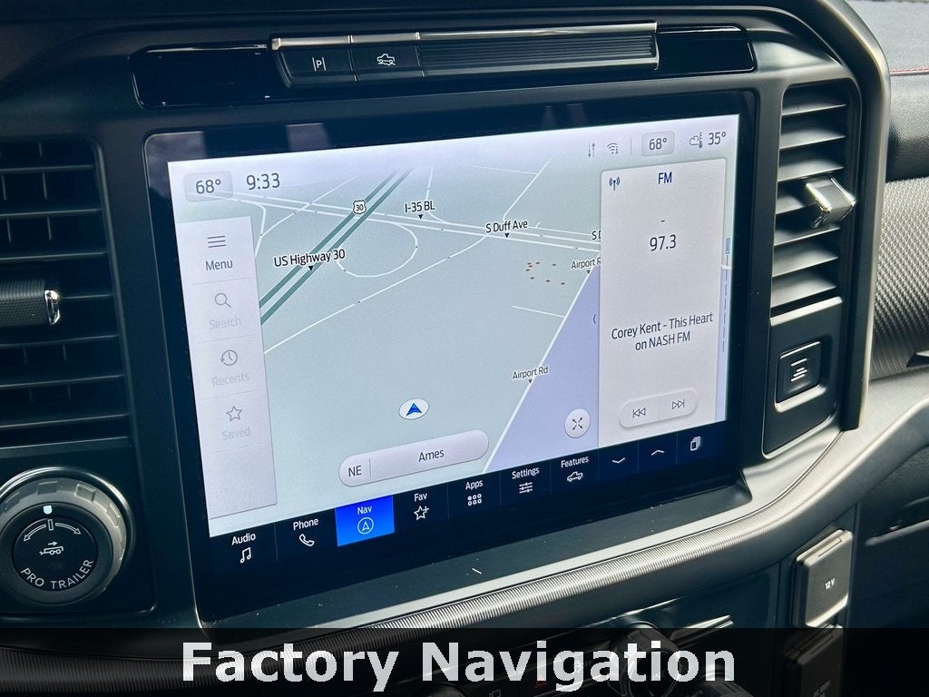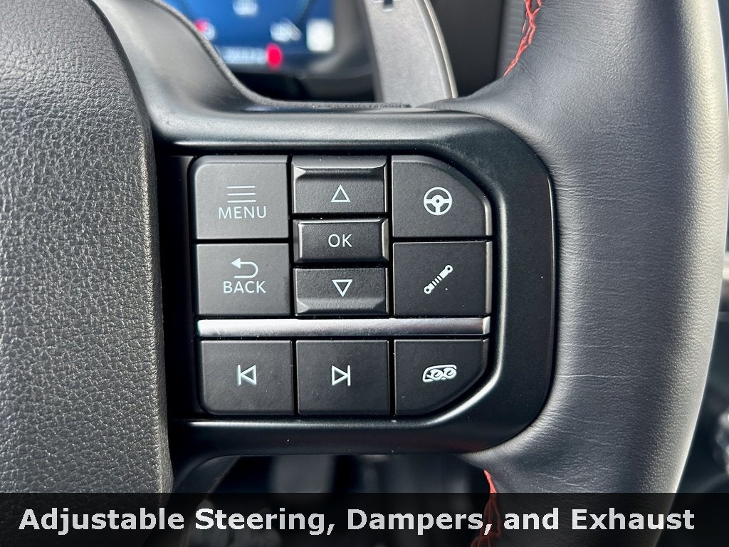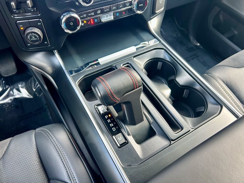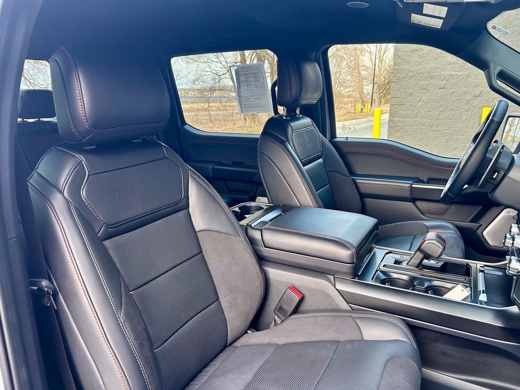 The ultra-performance Raptor trim outfits the F-150 with aggressive all-terrain tires on 17-inch wheels, exclusive high-clearance fenders, and a performance suspension with FOX 3.1-inch Live Valve Internal Bypass shocks. Inside, you'll find leather-trimmed seats with suede inserts and Raptor branding, a leather-wrapped steering wheel with paddle shifters, and unique interior accents with durable rubber flooring. The spacious SuperCrew cabin offers best-in-class interior room and standard dual-zone automatic climate control, complemented by a premium B&O Sound System by Bang & Olufsen for every high-speed adventure.